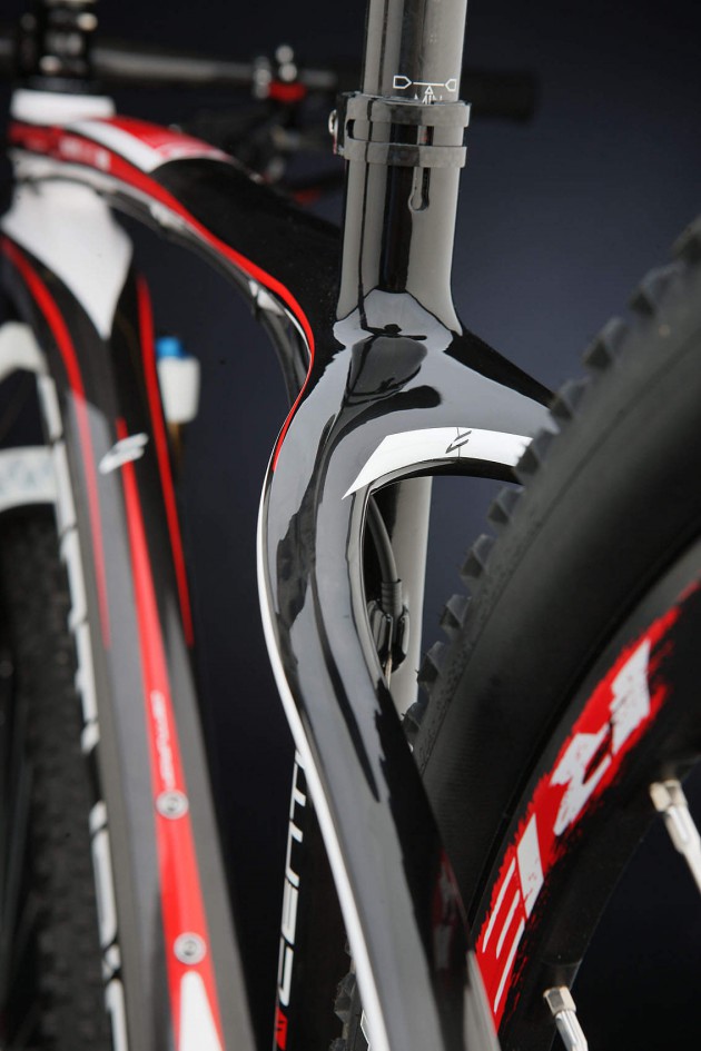 Herzstück des Bikes ist der knapp 1.200 Gramm leichte Rahmen aus einem UHM/HM-Carbonfaser-Mix. Durch die Verwendung dieser beiden Top-Fasern sowie durch deren dem jeweiligen Belastungsprofil jedes Rahmensektors angepassten Verlegung, erreicht der Backfire-Rahmen Steifigkeiten, die Rennfahrerherzen höher schlagen lassen. Speziell der massiv ausgearbeitete Steuerkopfkopf sowie das verwindungssteife Tretlager sorgen für race-tauglichen Vortrieb und höchste Lenkpräzision. Feines Detail: Der 142 Millimeter breite Hinterbau nimmt 12-Millimeter-Steckachsen auf, um dem gesamten Bike speziell am Vortrieb erzeugenden Hinterrad nochmals mehr Steifigkeit zu vermitteln. Innenverlegte Züge runden die optisch ansprechende Erscheinung des bis ins letzte Detail durch-designten Rahmens ab.
